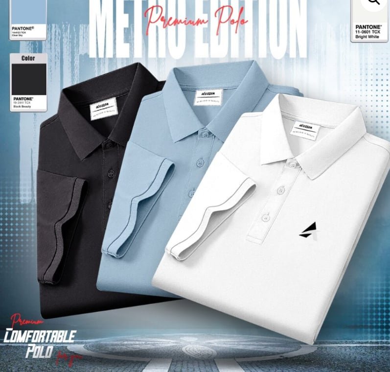 Men's Premium Polo Shirt Combo (White & Black & Sky)