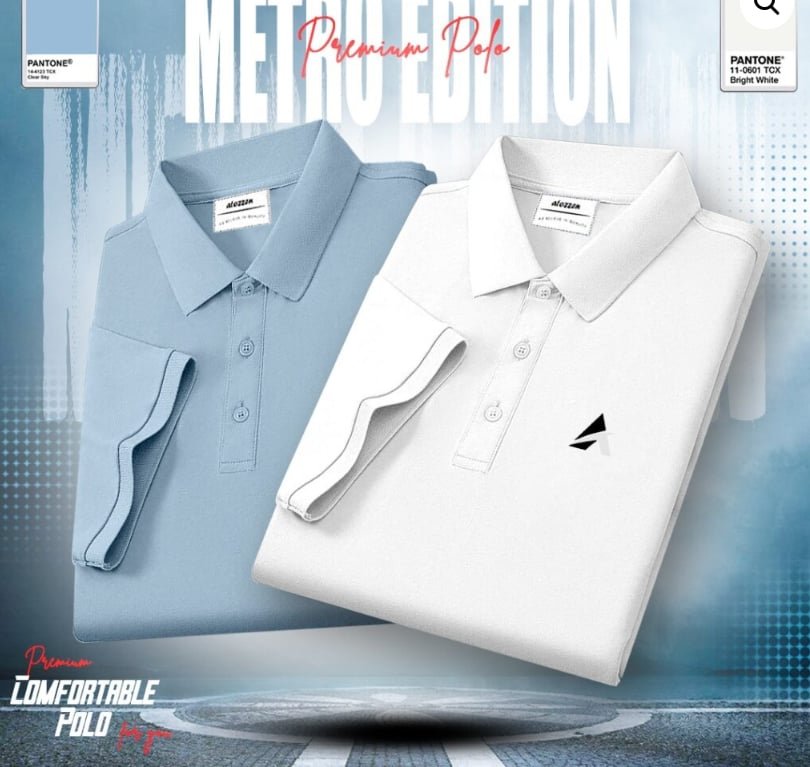 Men's Premium Polo Shirt Combo (White & Sky)
